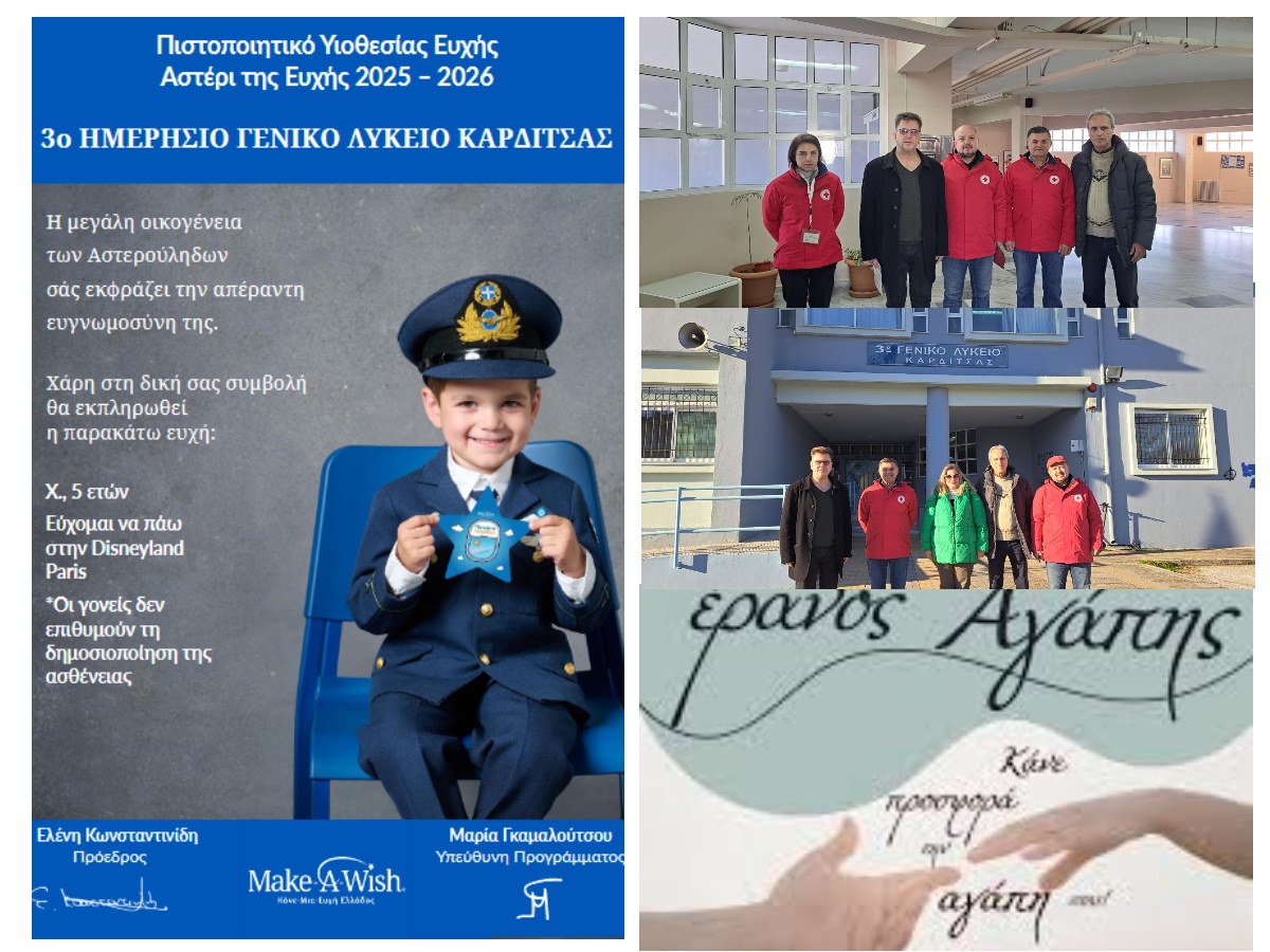 Με αφορμή τις άγιες ημέρες της Εορτής τωνΧριστουγέννων, αλλά και γενικότερα στα πλαίσια του κλίματος ενσυναίσθησης και αλληλεγγύης που καλλιεργεί το σχολείο μας μαθητές/τριες του 3ου ΓΕΛ συμμετείχαν σε μια σειρά από δράσεις εθελοντισμού. Αρχικά συγκέντρωσαν τρόφιμα και είδη πρώτης ανάγκης, τα οποία παρέδωσαν στο Περιφερειακό Τμήμα του Ελληνικού Ερυθρού Σταυρού. Οι συμμετέχοντες από το Περιφερειακό Τμήμα Ελλ. Ερυθρού Σταυρού Καρδίτσας ήταν ο πρόεδρος Μανώλης Στεργιόπουλος και οι κ.κ. Θοδωρής Κουτσώνας, Κωνσταντίνα Τάμπα & Δημήτρης Παπαθεοδώρου. Στη συνέχεια, μαθητές/τριες βοήθησαν στην διεξαγωγή του καθιερωμένου Εράνου Αγάπης της Ι.Μ. Θεσσαλιώτιδος και Φαναριοφερσάλων στους δρόμους που περιλαμβάνονται στην ενορία της Αγίας Παρασκευής συμβάλλοντας στην ενίσχυση ευάλωτων ομάδων. Τέλος υλοποίησε με μεγάλη επιτυχία το Εκπαιδευτικό πρόγραμμα Αστέρι της Ευχής (Make-A-Wish), που εκπληρώνει ευχές παιδιών με πολύ σοβαρές ασθένειες. Οι παραπάνω δράσεις, που αναδεικνύουν στη σχολική κοινότητα την αξία της κοινωνικής προσφοράς και της φιλανθρωπίας έγιναν με την πρωτοβουλία και εποπτεία του κ. Ν. Καρατάσιου, ΠΕ01. | |