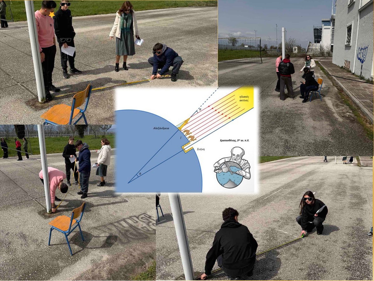 Στις 20 Μαρτίου 2026, ημέρα Παρασκευή, κατά την 5η και 6η διδακτική ώρα, πραγματοποιήθηκε στον αύλειο χώρο του σχολείου μας για ακόμη μια χρονιά η υλοποίηση του πειράματος του Ερατοσθένη από τους μαθητές και τις μαθήτριες των τμημάτων Α1, Α3, Α4, Β1 και Β4, αποδεικνύοντας πως η επιστήμη μπορεί να γίνει βιωματική και συναρπαστική.